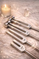 This set is ideal for those new to tuning forks, as well as for practitioners seeking a compact, versatile toolkit for everyday personal practice. Each frequency supports a different layer of experience, allowing exploration across grounding, structural support, subtle activation and gentle coherence.