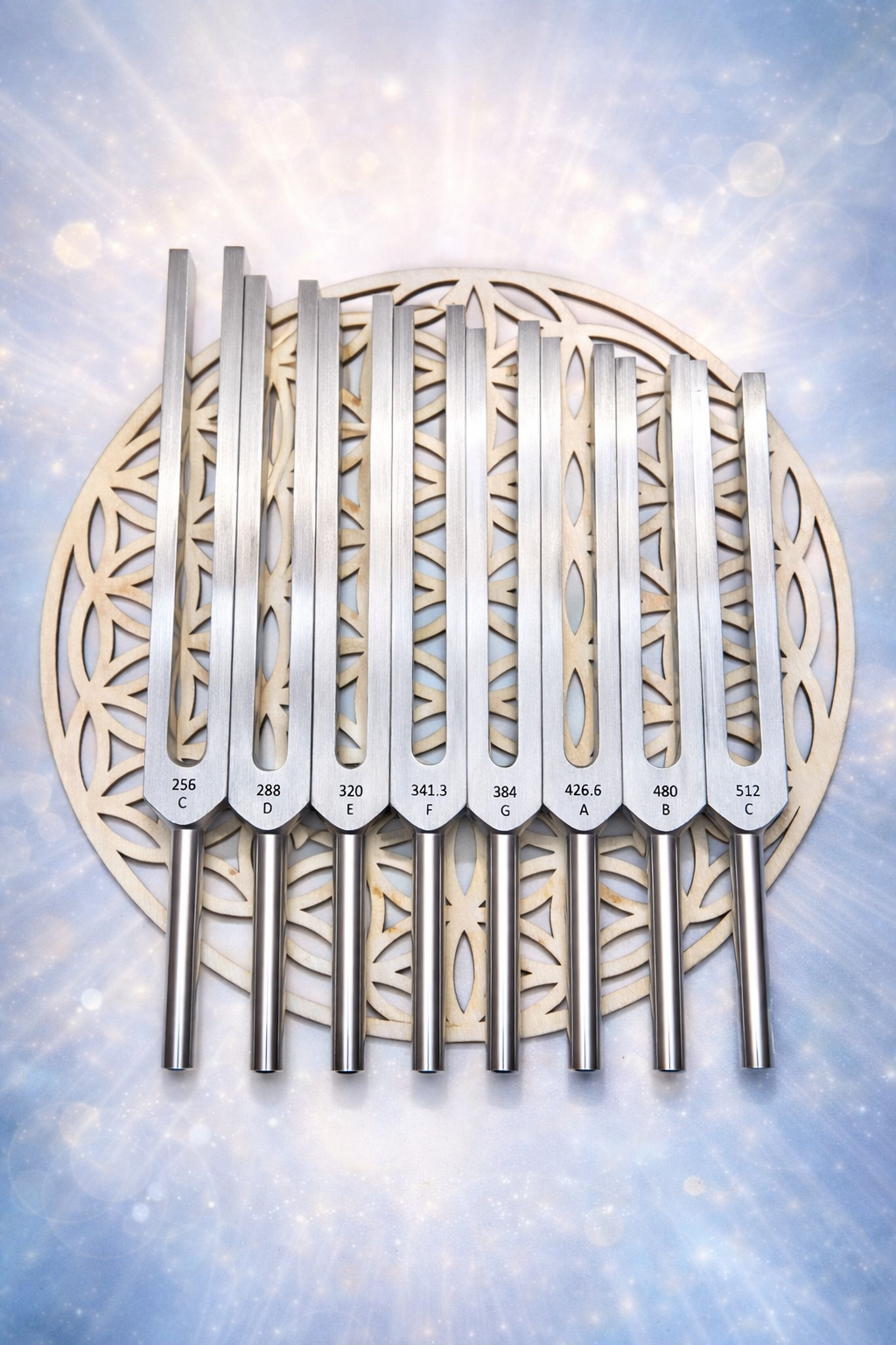 Comprising eight tuning forks aligned with the harmonic musical scale (C–C), this set offers a broad and balanced spectrum for exploring resonance, coherence, and relational frequency work.